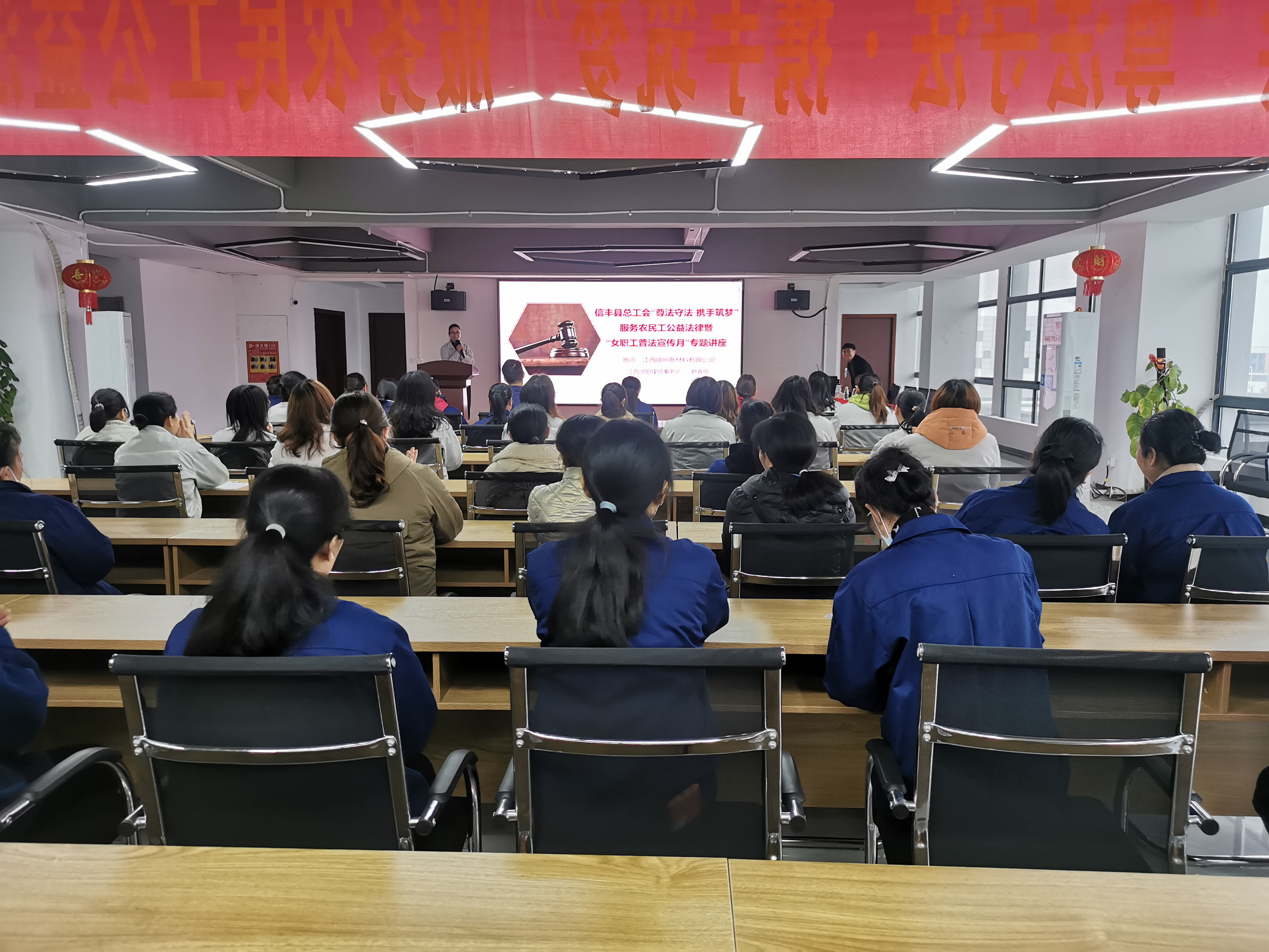 为深入学习贯彻落实党的二十大精神,有效引导和规范职工依法维权和企业用工行为,进一步依法保障职工合法权益特别是女职工特殊权益,3月27日,信丰县总工会在高新区企业开展了“尊法守法·携手筑梦”服务农民工公益法律暨女职工普法宣传月活动。