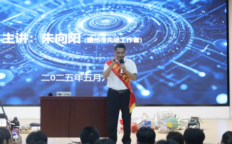 5月6日,由信丰县总工会、信丰县劳模协会组织的“劳模进校园”宣讲活动走进信丰中等专业学校。江西省特级教师、信丰圣塔高级中学特聘教师、赣州市先进工作者朱向阳受邀到场,为现场1000余名师生带来了一场别开生面的分享,将劳模精神与科学魅力巧妙融合,让现场师生收获满满。